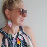 Each ice lolly is laser cut from perspex, with two layers glued together by my fair hands. Each lolly measures 5.5cm in length and 2.7cm wide, the whole thing is on a gold or silver plated chain.